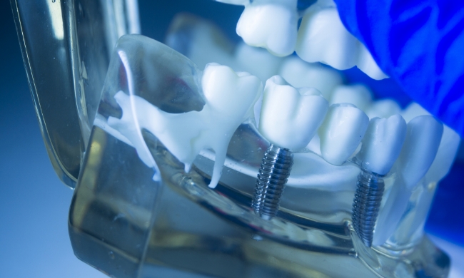 失ってしまった自分の歯の替わりに、あごの骨に人工の歯根を埋め込み、その上に人工の歯を取り付けて、噛み合わせを回復する新しい治療法をインプラント治療と呼びます。